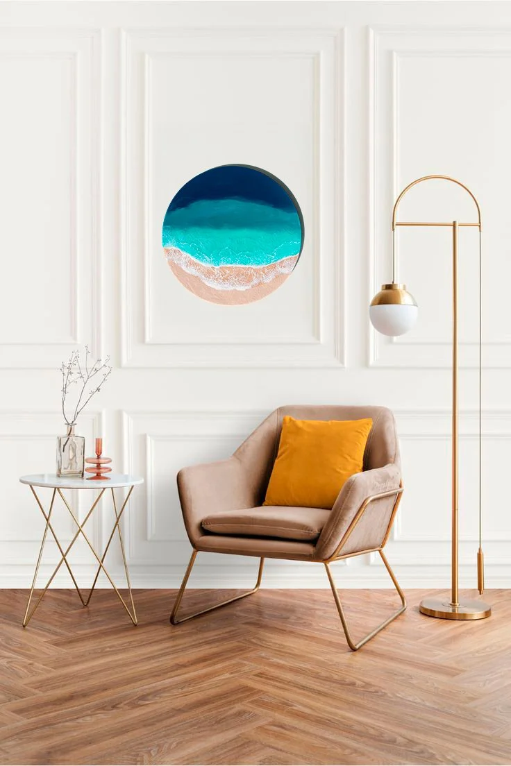 Cada una de mis obras de Arte están trabajadas de forma completamente artesanal, aplicando varias capas de resina Epoxy, pigmentos, arenas y minerales para recrear texturas, volumenes, profundidad luces y el movimiento del océano con un realismo sorprendente.